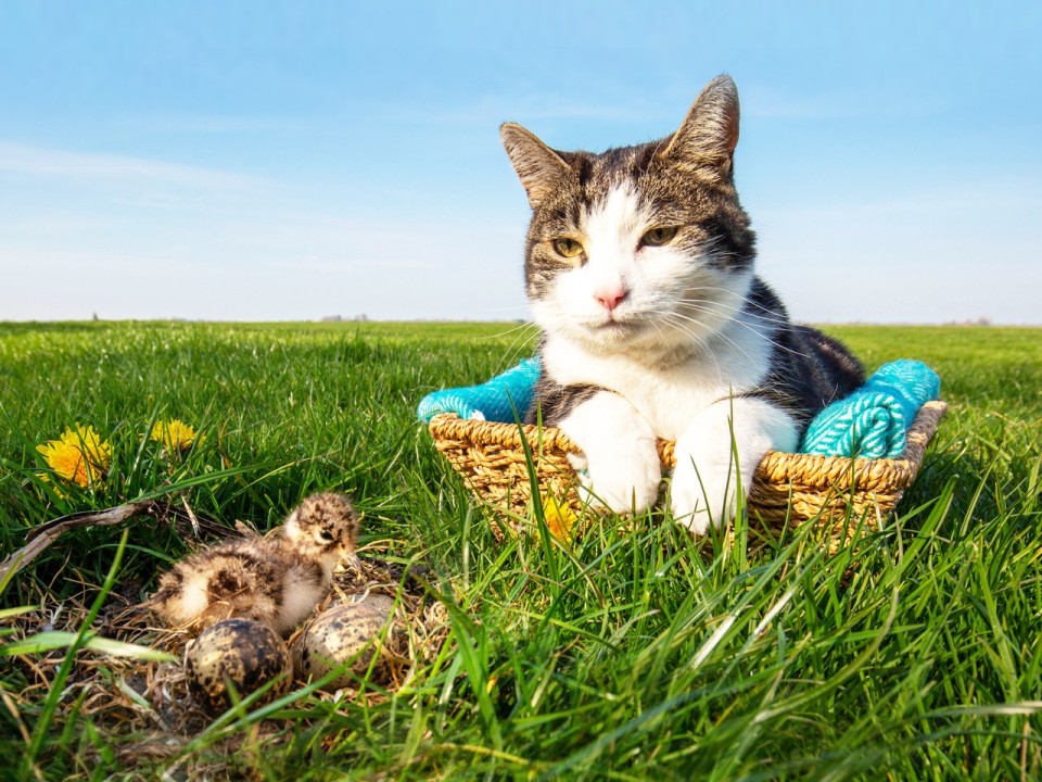 Katten zijn jagers. Ze doden instinctief ook weidevogelkuikens en verstoren nesten. Daarom: houd je kat in het voorjaar ’s nachts binnen!